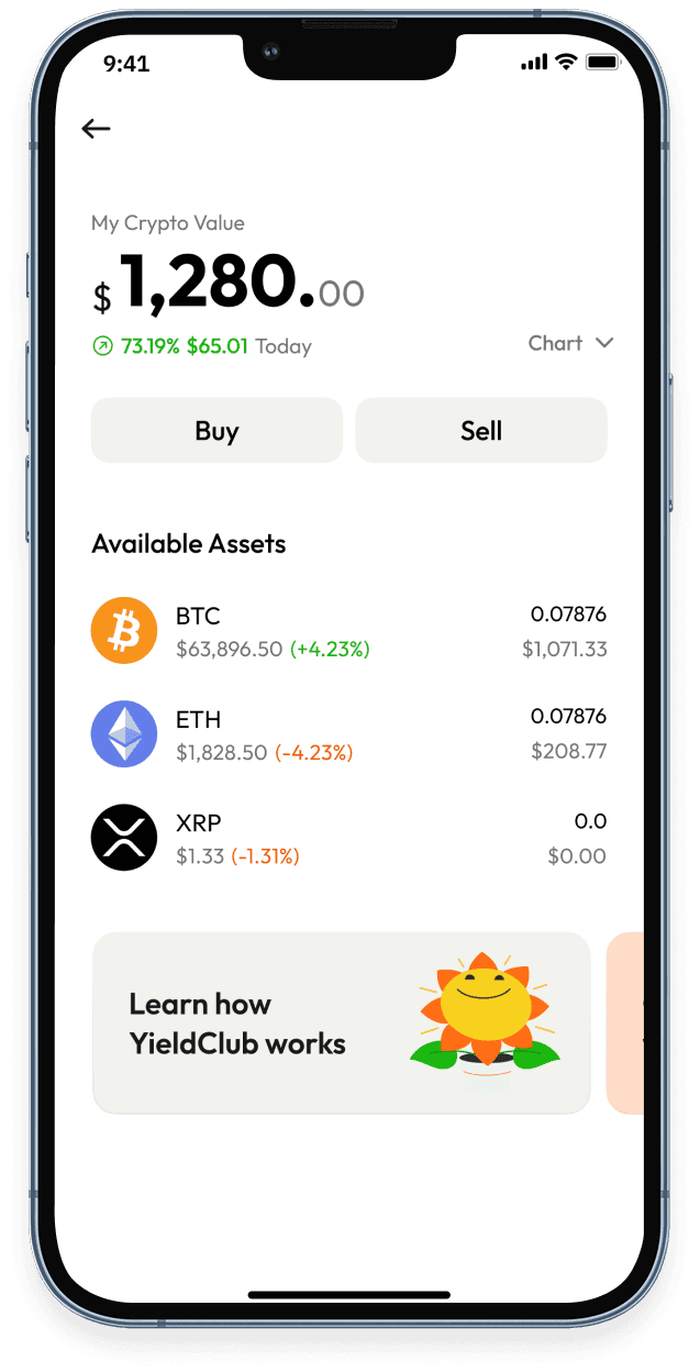 Yes. You can sell any of your BTC, ETH, or XRP holdings back to USD directly within the app. Go to the Trade section, select the asset you want to sell, enter the amount, review the details, and confirm. Proceeds will appear in your YieldClub wallet balance.